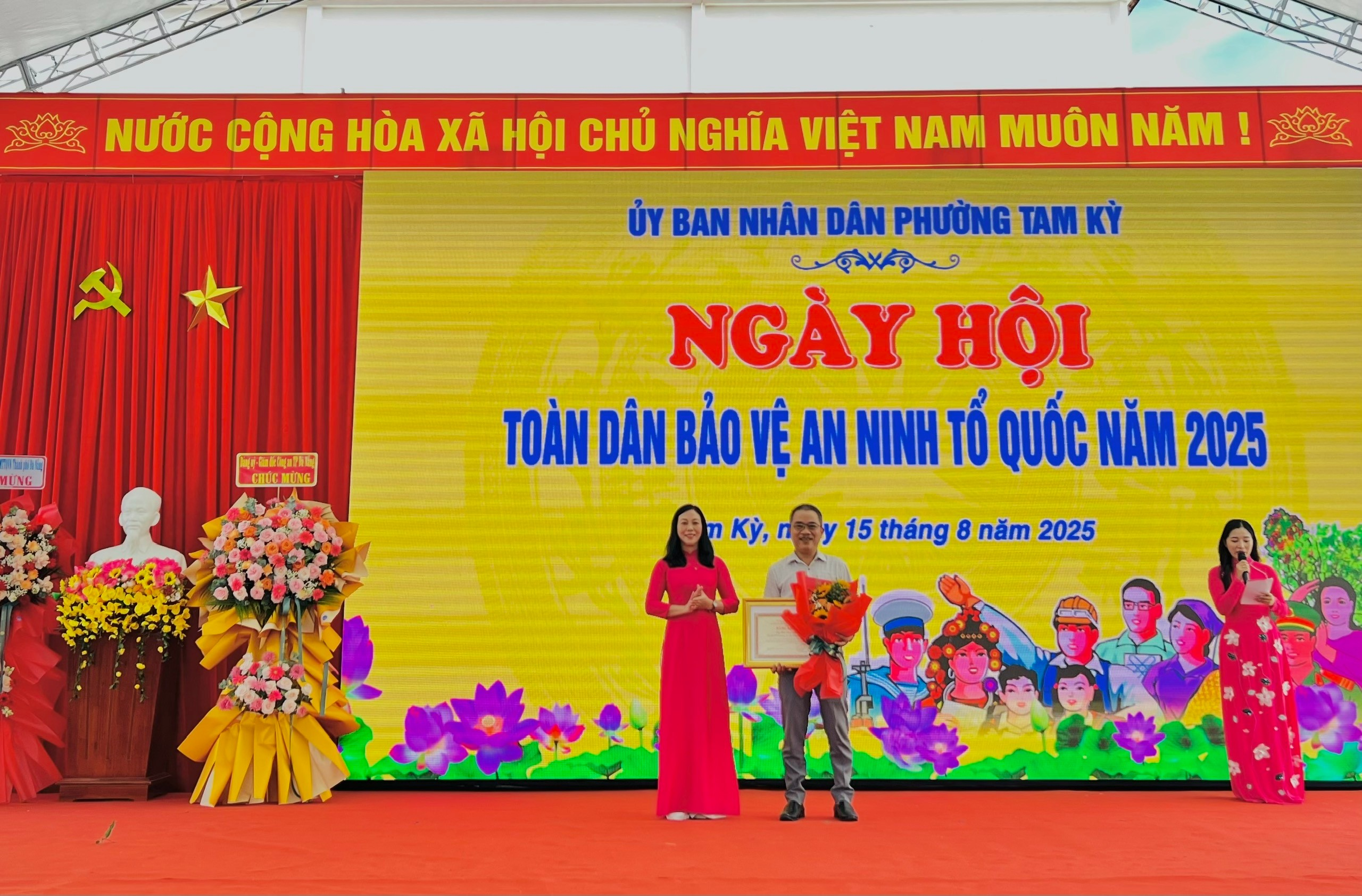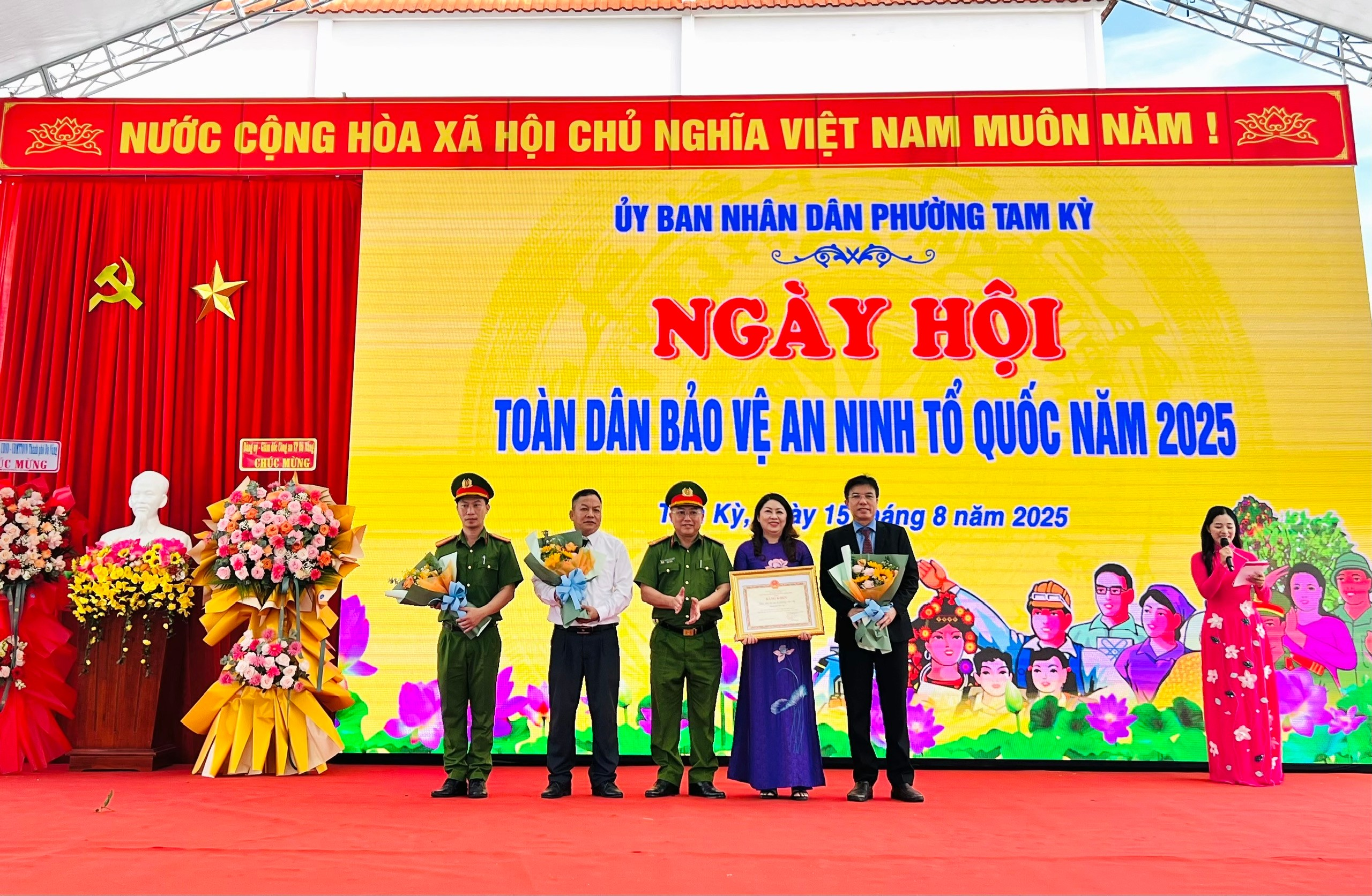 Sáng 15/8, UBND phường Tam Kỳ tổ chức Ngày hội Toàn dân bảo vệ an ninh Tổ quốc, nhân kỷ niệm 80 năm Ngày truyền thống lực lượng Công an nhân dân (19/8/1945- 19/8/2025), 20 năm Ngày hội Toàn dân bảo vệ an ninh Tổ quốc (19/8/2005- 19/8/2025). Dự ngày hội có Đại tá Nguyễn Văn Tăng – Thành ủy viên, Phó Giám đốc Công an thành phố Đà Nẵng; bà Nguyễn Thị Thanh Phương – Phó Chủ tịch Ủy ban MTTQ Việt Nam thành phố Đà Nẵng; đồng chí Phạm Hồng Quảng – Phó Trưởng Ban Tuyên giáo – Dân vận Thành ủy; lãnh đạo Đảng ủy, HĐND, UBND, Ủy ban MTTQ Việt Nam phường Tam Kỳ; cùng các lực lượng vũ trang, đoàn thể trên địa bàn phường.