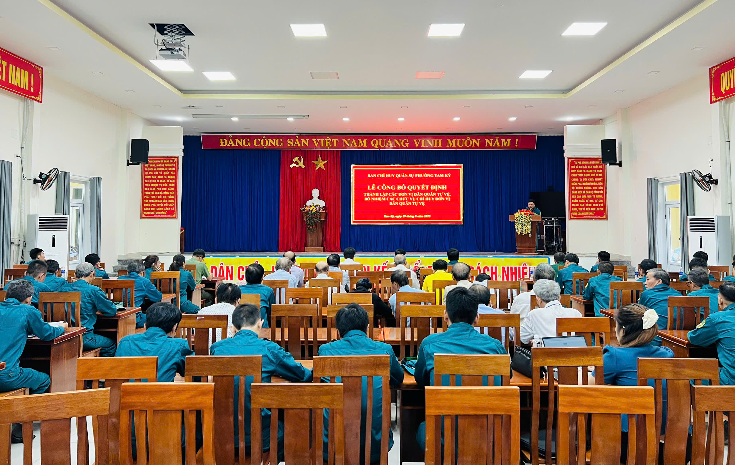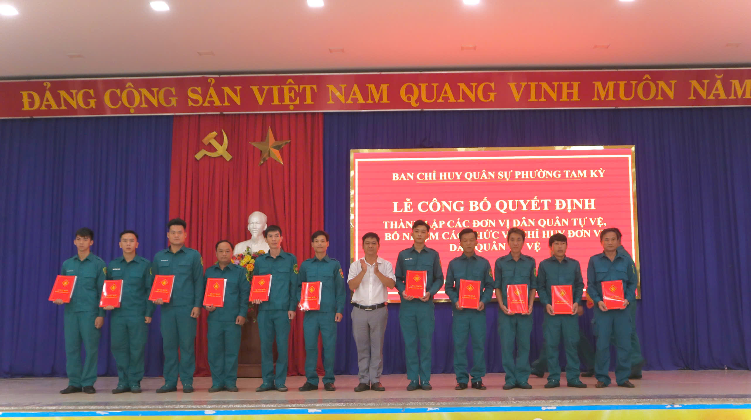 Sáng 29/8, Ban Chỉ huy Quân sự (CHQS) phường Tam Kỳ tổ chức lễ công bố quyết định thành lập các đơn vị dân quân tự vệ và bổ nhiệm chức vụ chỉ huy. Tham dự buổi lễ có đồng chí Phan Bá Hội – Phó Bí thư Thường trực Đảng ủy phường; Đồng chí Bùi Tấn Công - Phó chủ tịch UBND phường.