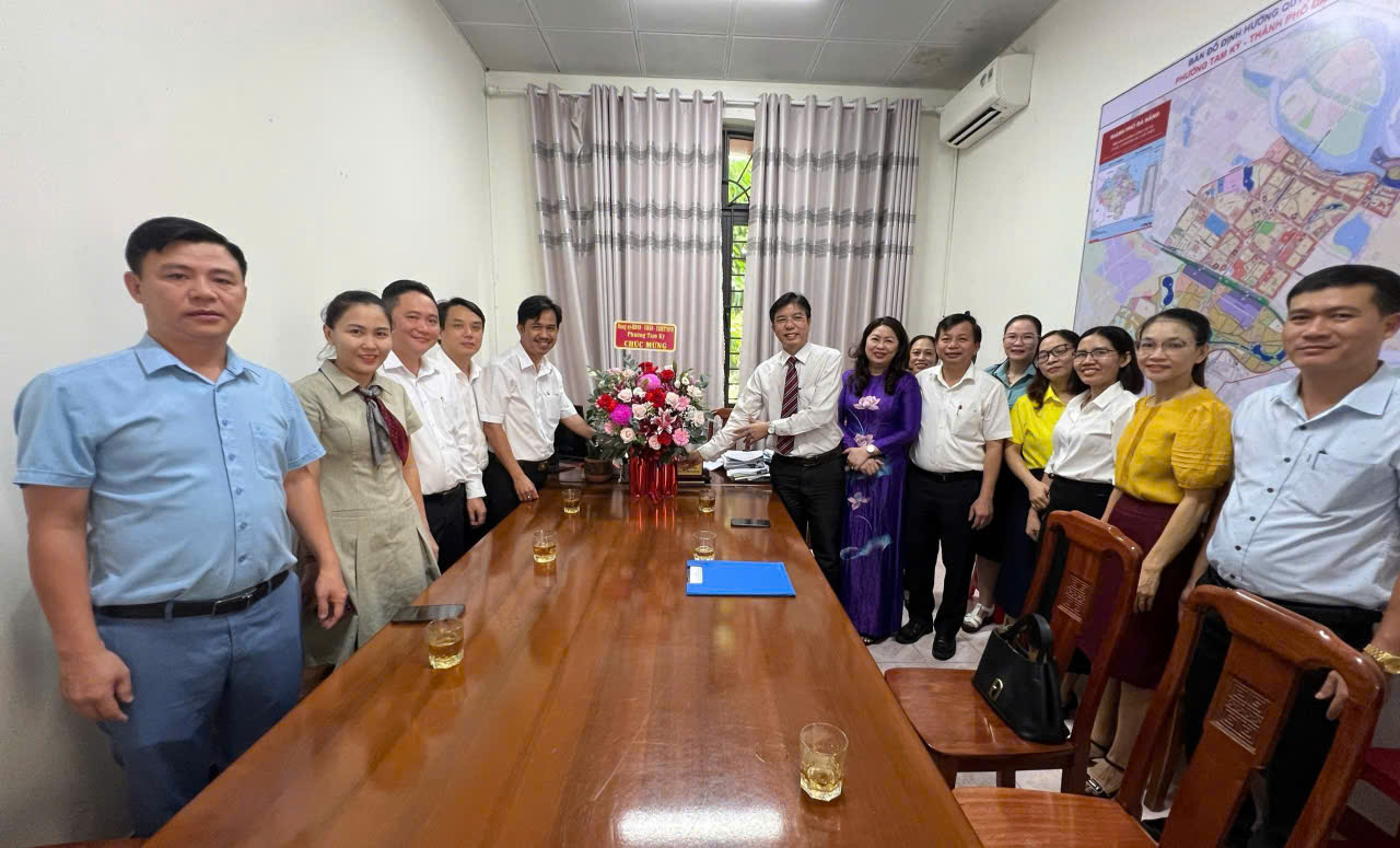 Lãnh đạo thăm và tặng hoa chúc mừng phòng kinh tế hạ tầng và đô thị phường
