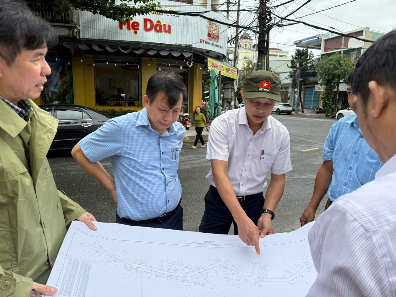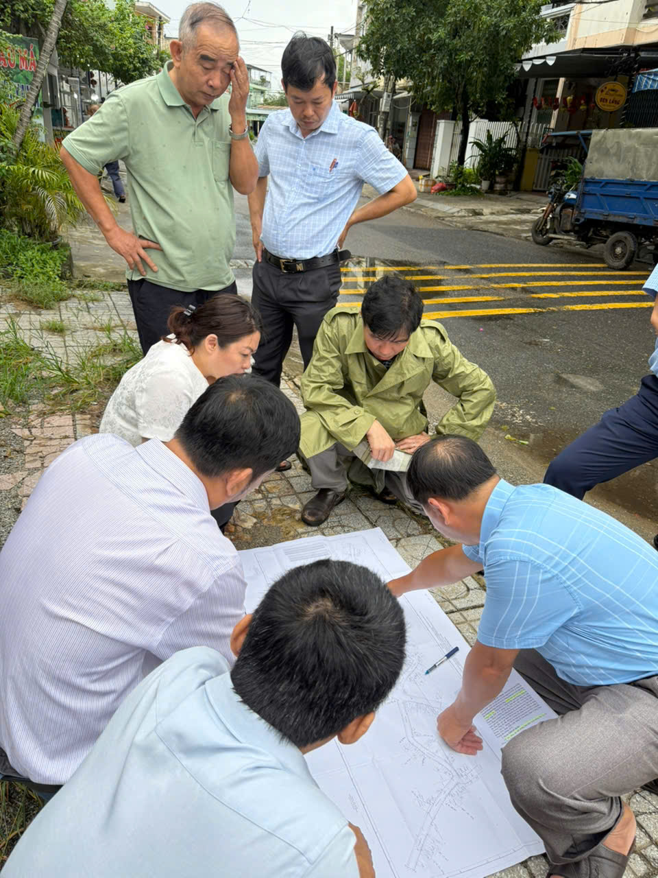 Chủ tịch Đỗ Văn Minh và phó chủ tịch Nguyễn Quang Tuấn đi kiểm tra hiện trường các điểm ngập úng cục bộ