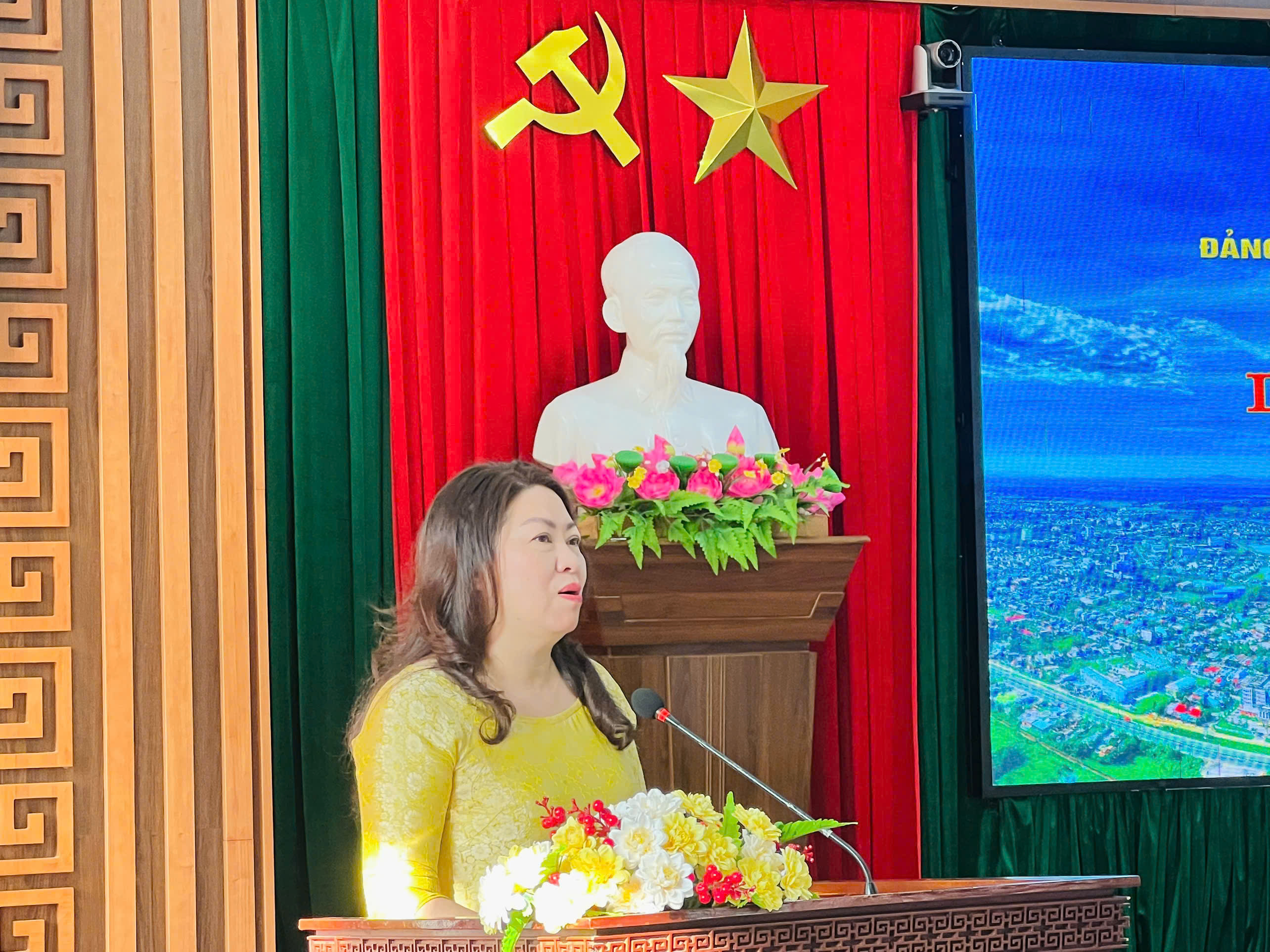 Đồng chí Nguyễn Thị Thu Lan - Bí thư - CT HĐND phường phát biểu tại buổi lễ