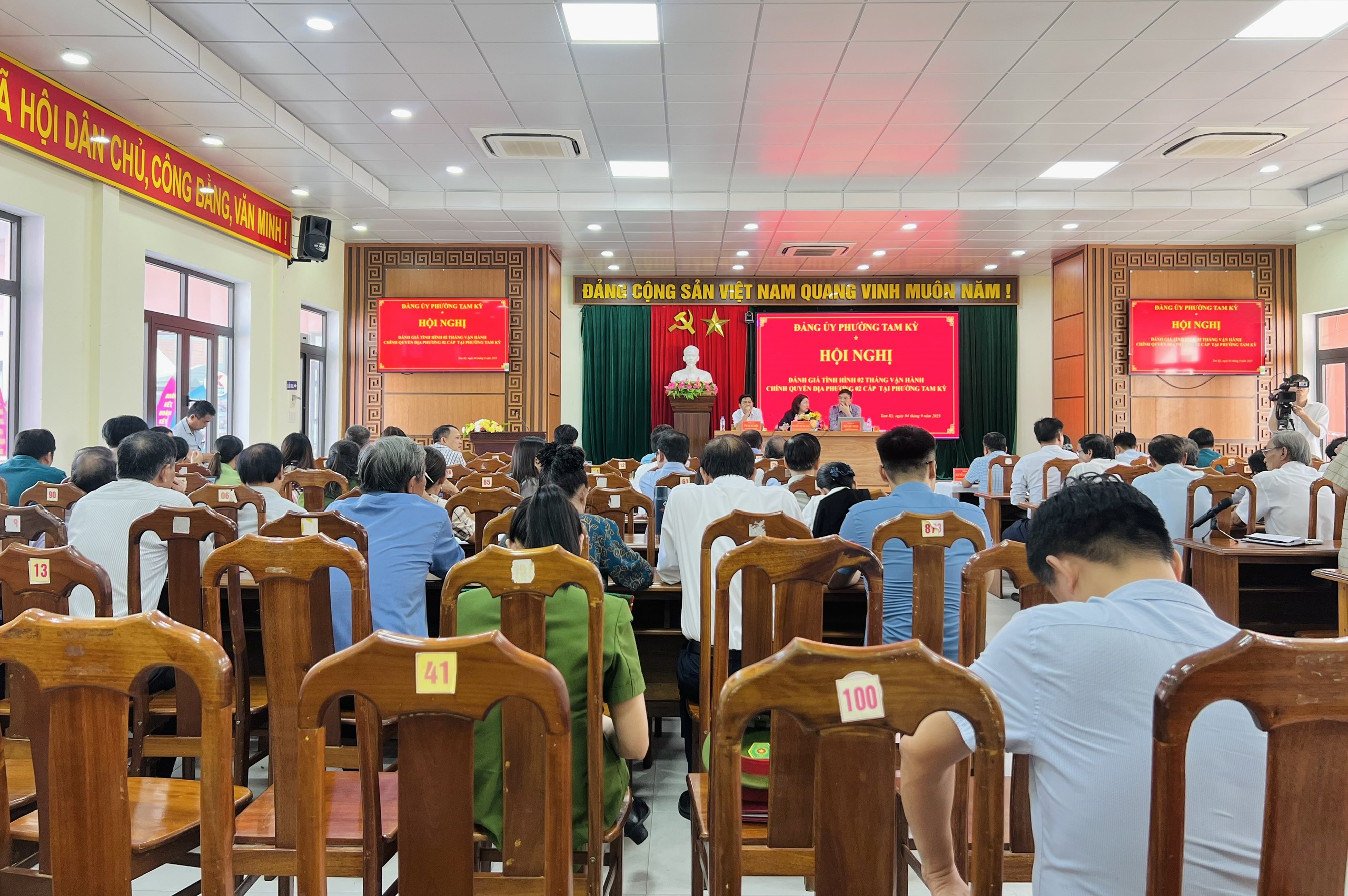 Báo cáo tại hội nghị cho thấy, từ khi chính thức đi vào hoạt động (ngày 1/7/2025), bộ máy chính quyền phường Tam Kỳ đã nhanh chóng ổn định tổ chức, bảo đảm công việc thông suốt, kịp thời giải quyết thủ tục hành chính cho Nhân dân. Trong 2 tháng, Trung tâm Phục vụ hành chính công phường đã tiếp nhận trên 5.600 hồ sơ, với tỷ lệ giải quyết đúng và trước hạn đạt trên 95%, bước đầu tạo sự hài lòng trong Nhân dân. Các mặt công tác lãnh đạo, chỉ đạo của Đảng ủy, hoạt động của HĐND, UBND phường đều bám sát nghị quyết, chương trình công tác, tập trung triển khai các nhiệm vụ phát triển kinh tế - xã hội, quốc phòng - an ninh, đảm bảo an sinh xã hội. Công tác cải cách hành chính, chuyển đổi số, xây dựng đô thị văn minh tiếp tục được đẩy mạnh; nhiều hoạt động chính trị, văn hóa, xã hội được tổ chức sôi nổi, tạo không khí thi đua tại địa phương. Bên cạnh những kết quả đạt được, hội nghị cũng thẳng thắn chỉ ra một số khó khăn, vướng mắc như: cơ sở vật chất, hạ tầng công nghệ thông tin tại Trung tâm Phục vụ hành chính công còn hạn chế; khối lượng công việc lớn trong khi biên chế được giao còn ít; một số quy định, hướng dẫn của cấp trên chưa kịp thời, gây khó khăn cho quá trình thực hiện.