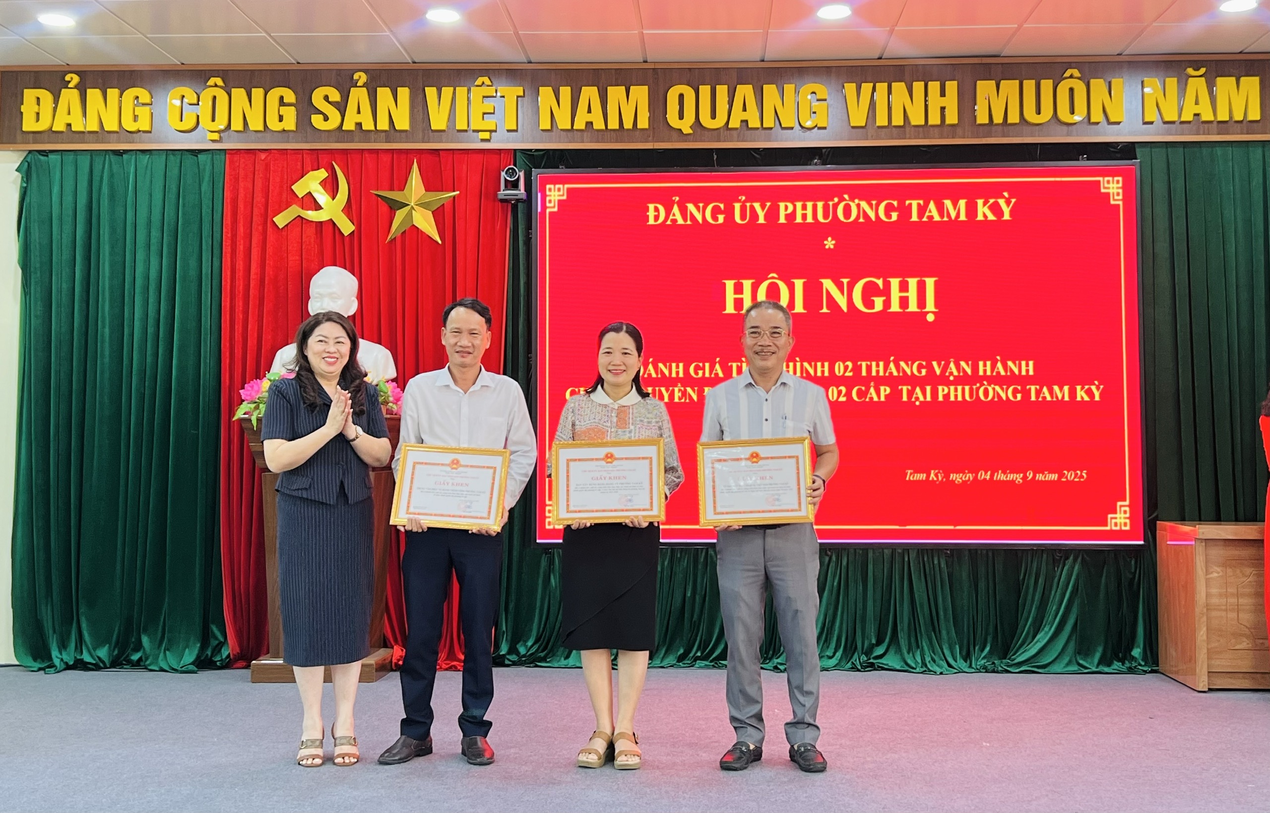 Tại hội nghị, Đảng ủy phường Tam Kỳ đã khen thưởng 3 tập thể và 19 cá nhân có thành tích xuất sắc trong triển khai vận hành mô hình chính quyền địa phương 2 cấp, góp phần nâng cao hiệu quả hoạt động của hệ thống chính trị ở cơ sở.