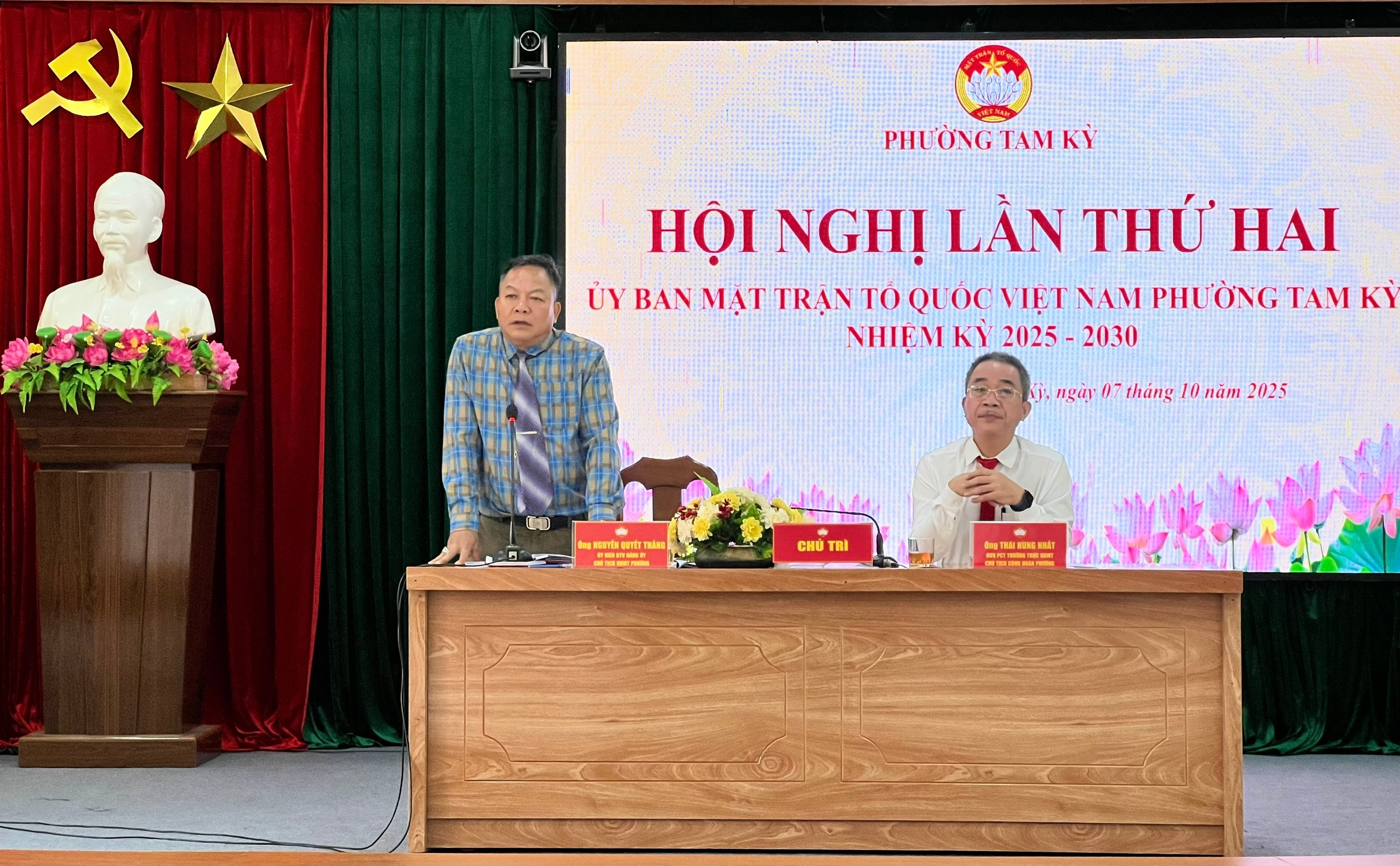 Phát biểu tại hội nghị, đồng chí Phan Bá Hội – Phó Bí thư Thường trực Đảng ủy phường – ghi nhận và biểu dương tinh thần chủ động, trách nhiệm của Ban Thường trực MTTQ phường Tam Kỳ trong thời gian qua. Đồng chí đề nghị Mặt trận phường tiếp tục rà soát nhiệm vụ, xây dựng kế hoạch cụ thể để thực hiện tốt các mục tiêu năm 2025; kiện toàn tổ chức bộ máy, phân công nhiệm vụ phù hợp với trình độ chuyên môn của cán bộ, công chức; tổ chức tốt các hoạt động kỷ niệm ngày thành lập các tổ chức hội trong tháng 10; đồng thời tăng cường phối hợp với UBND và các tổ chức chính trị – xã hội trong thực hiện nhiệm vụ, nắm bắt tình hình tư tưởng, dư luận Nhân dân để kịp thời phản ánh với cấp ủy, chính quyền.