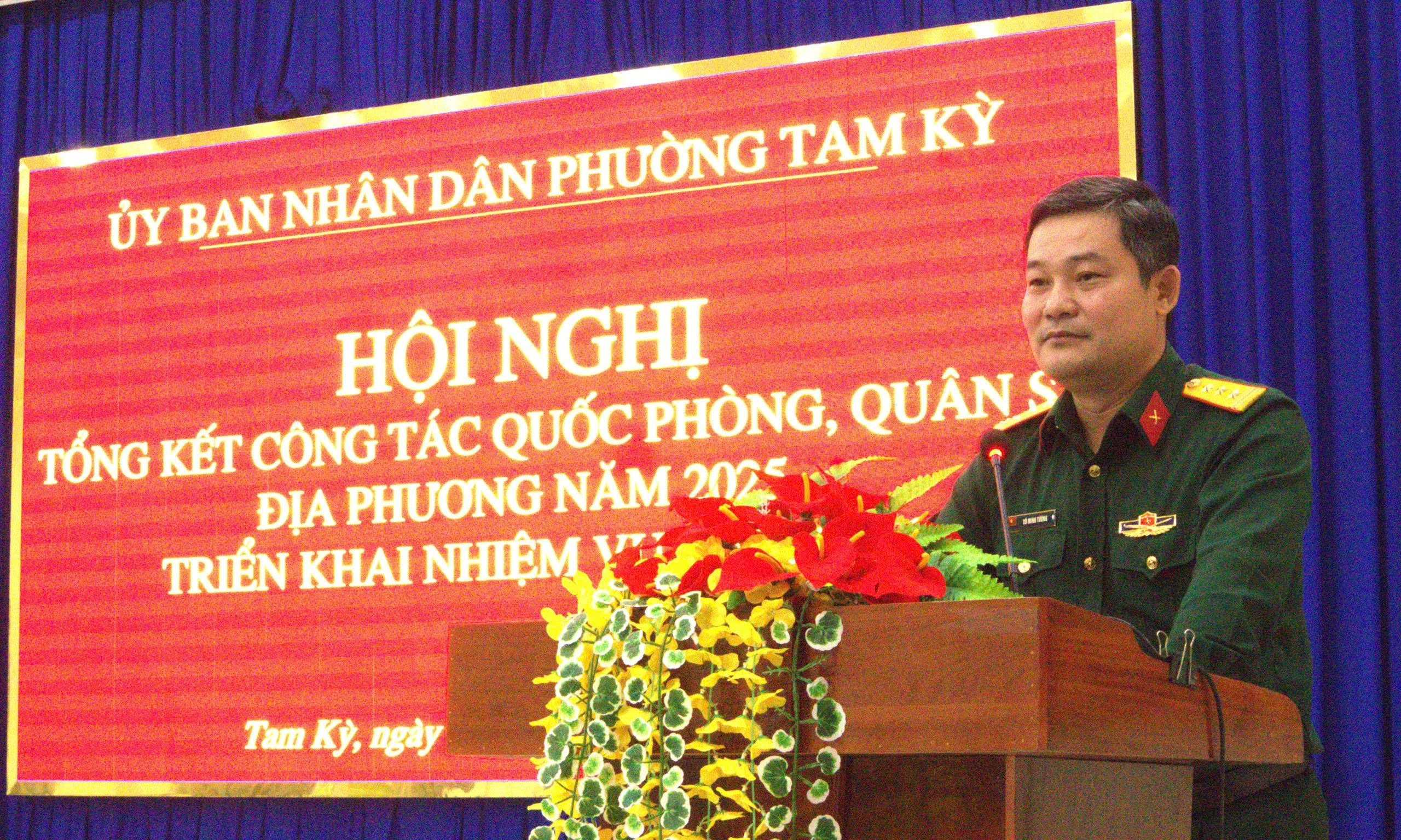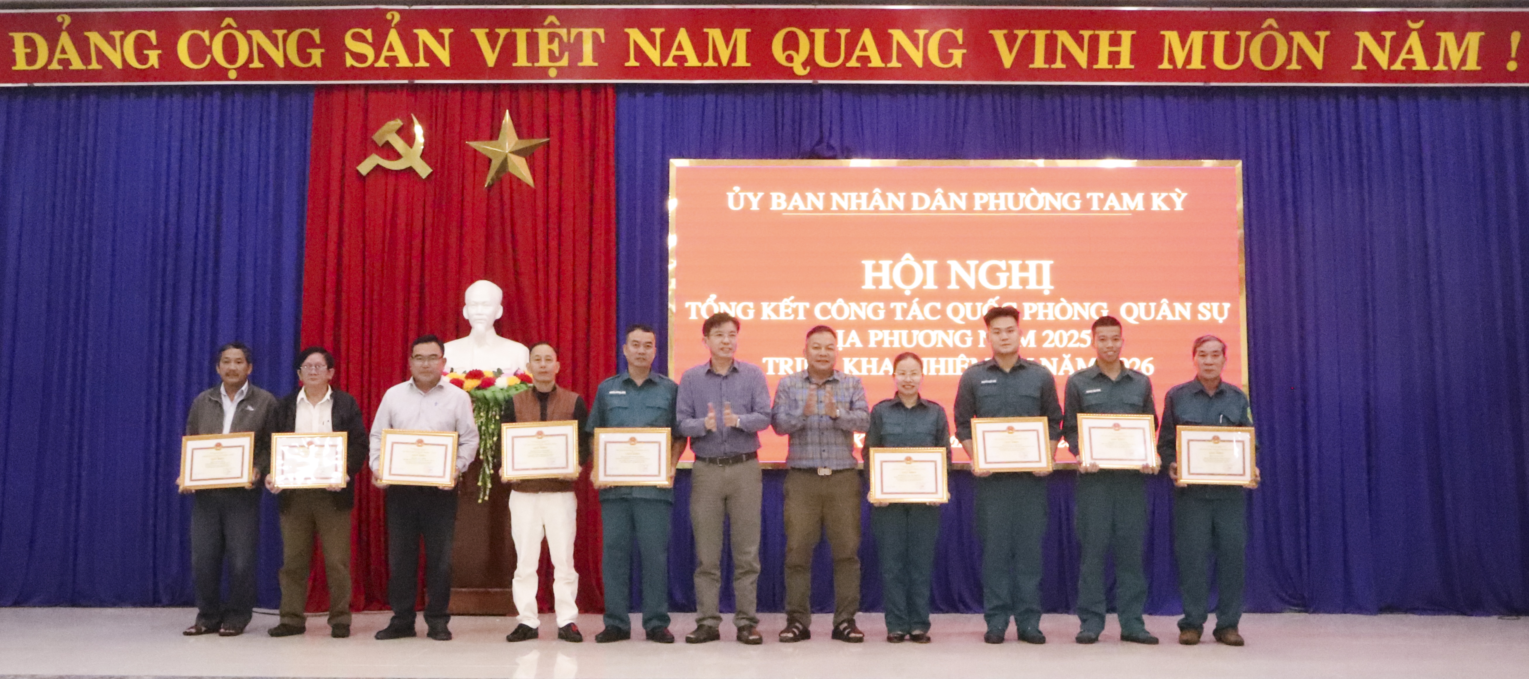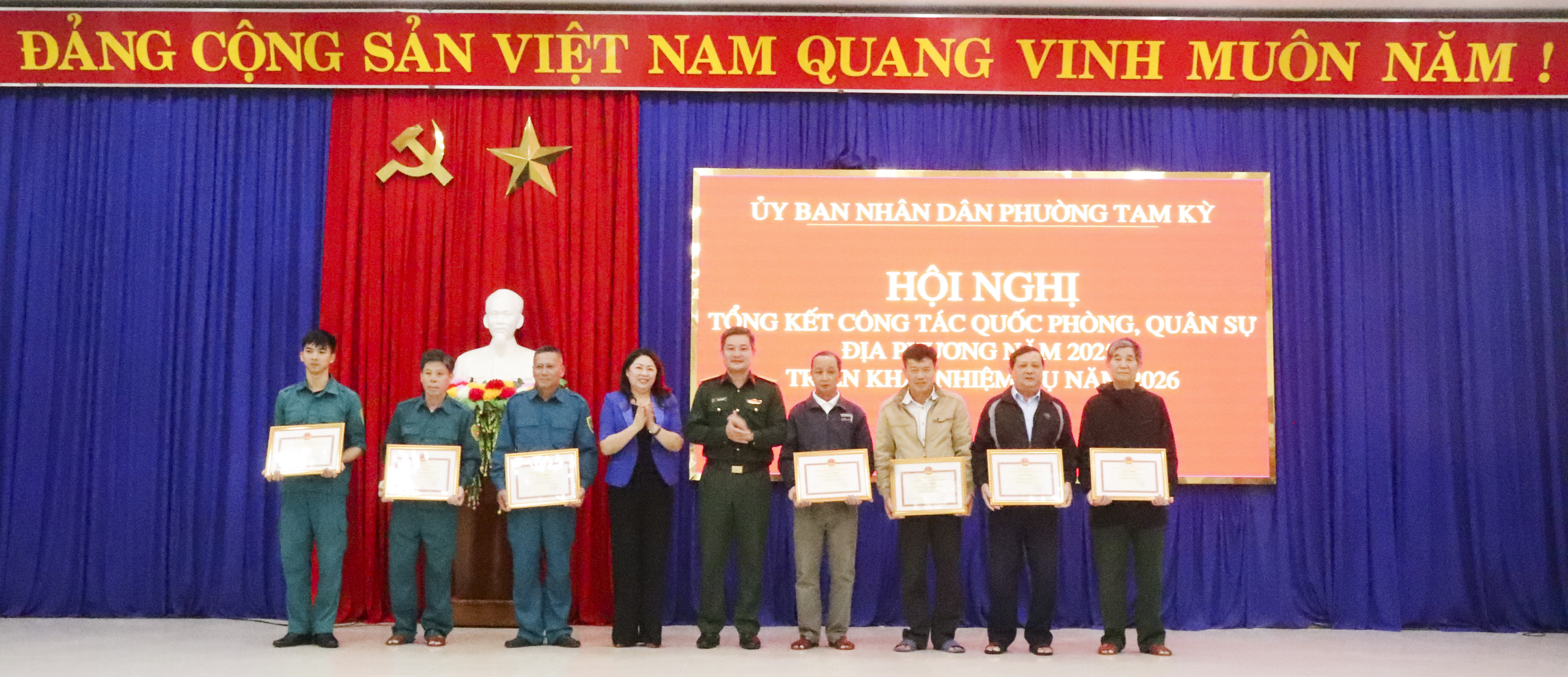 Tại hội nghị, UBND phường Tam Kỳ đã triển khai phương hướng, nhiệm vụ trọng tâm năm 2026; đồng thời tuyên dương, khen thưởng 7 tập thể và 9 cá nhân có thành tích xuất sắc trong thực hiện nhiệm vụ Quốc phòng – Quân sự địa phương năm 2025.