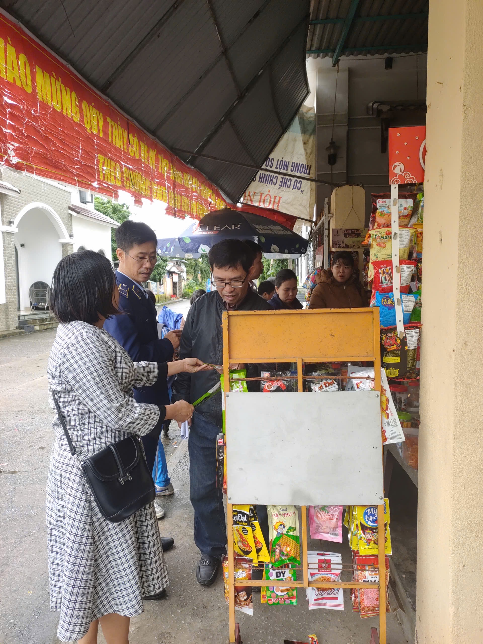 Nhằm đảm bảo vệ sinh an toàn thực phẩm và bảo vệ sức khỏe cộng đồng, đặc biệt là học sinh, Đoàn kiểm tra liên ngành phường đã tiến hành kiểm tra nhiều mặt hàng được học sinh thường xuyên lựa chọn như bánh kẹo, nước giải khát, đồ ăn nhanh và các thực phẩm chế biến sẵn.