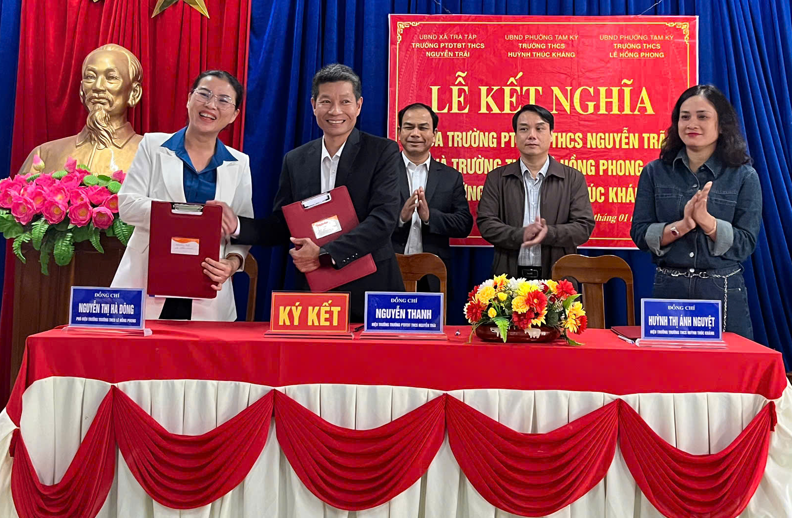 • Trường THCS Lê Hồng Phong, THCS Huỳnh Thúc Kháng kết nghĩa với Trường PTDTBT THCS Nguyễn Trãi, xã Trà Tập.