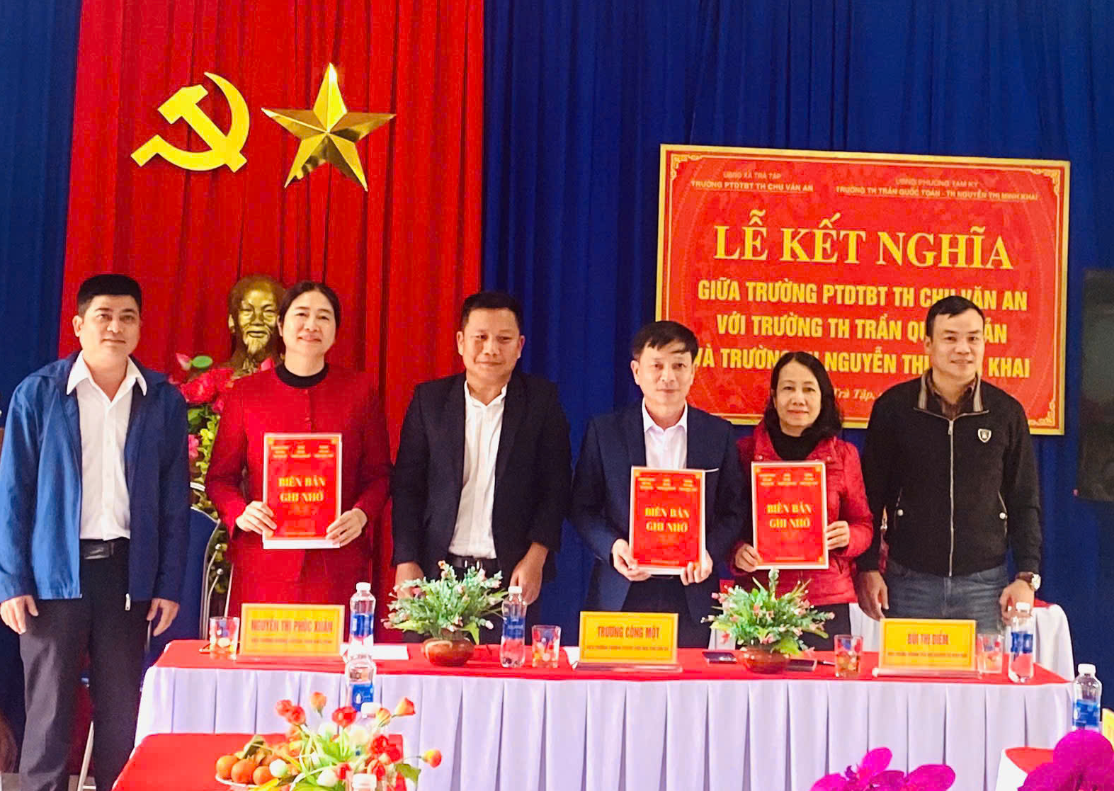 • Trường TH Trần Quốc Toản, TH Nguyễn Thị Minh Khai kết nghĩa với Trường PTDTBT TH Chu Văn An, xã Trà Tập;
