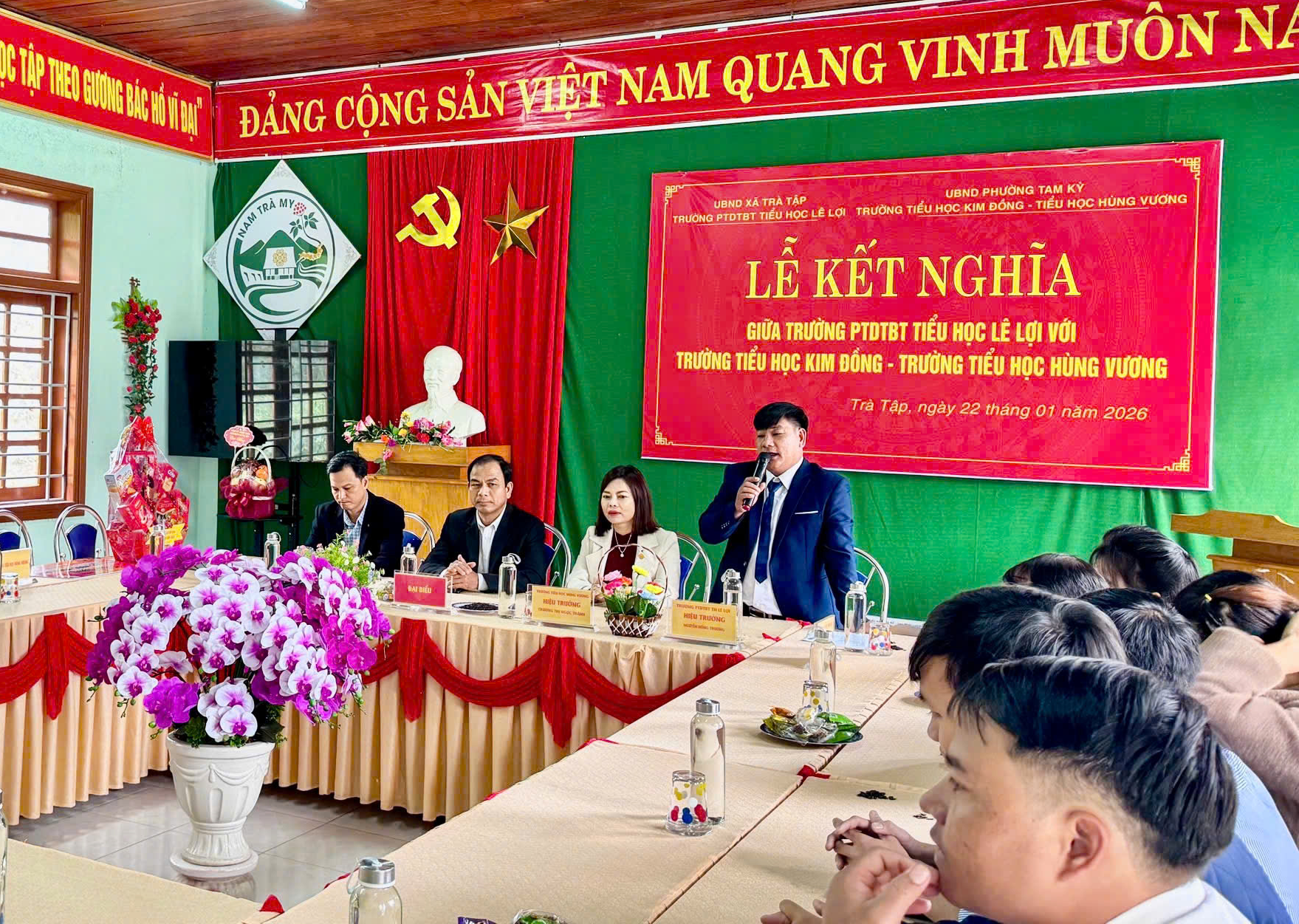 Ngày 22/01/2026, các trường học trên địa bàn phường Tam Kỳ đã tổ chức thăm, giao lưu, kết nghĩa và tặng quà tại các trường học trên địa bàn xã Trà Tập, trong chuỗi hoạt động thuộc Chương trình kết nghĩa giữa Đảng ủy phường Tam Kỳ và Đảng ủy xã Trà Tập.