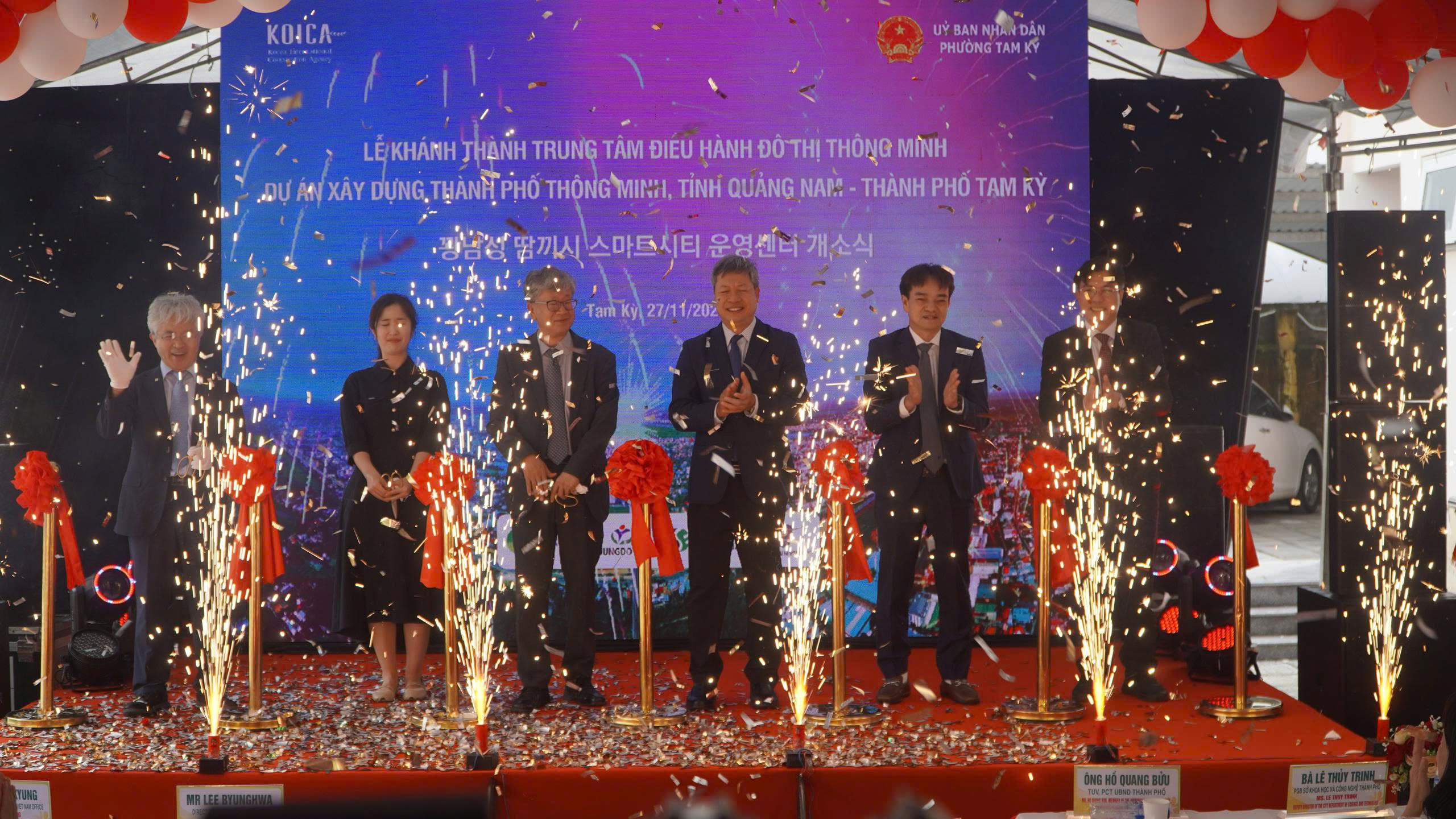 Đến dự buổi lễ có ông Lee Byunghwa, Giám đốc Cơ quan Hợp tác quốc tế Hàn Quốc KOICA cùng các thành viên đoàn đại biểu Hàn Quốc; ông Hồ Quang Bửu, Thành ủy viên, Phó Chủ tịch UBND thành phố Đà Nẵng, cùng đại diện các sở, ngành, các đơn vị tư vấn, chuyên gia Việt Nam – Hàn Quốc và lãnh đạo bốn phường Tam Kỳ, Bàn Thạch, Hương Trà, Quảng Phú.