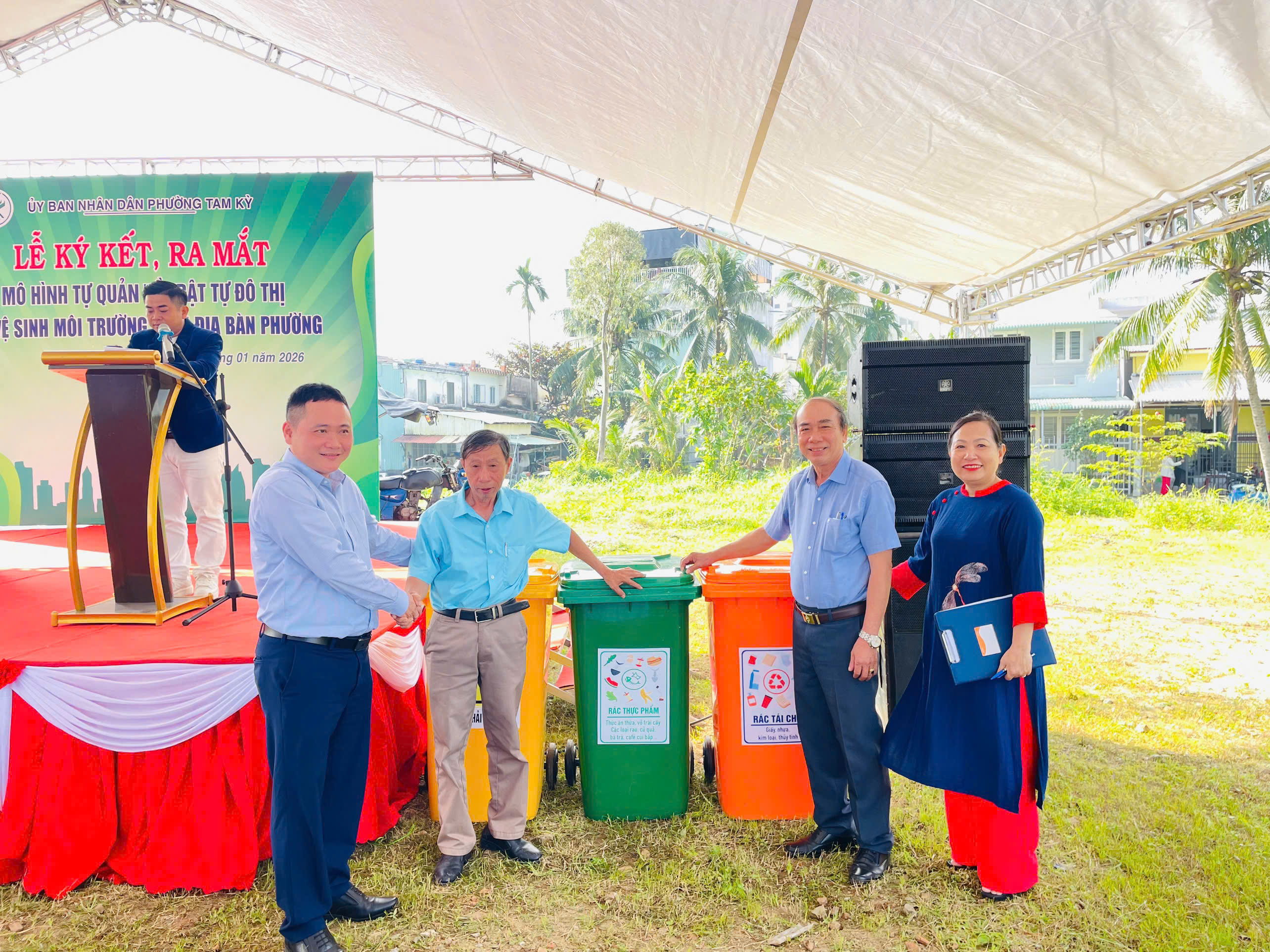 Ngay sau lễ ký kết, UBND phường Tam Kỳ đã trao tặng các thùng rác phân loại cho Tổ tự quản tuyến đường Huỳnh Thúc Kháng (nối dài), góp phần nâng cao ý thức phân loại rác thải tại nguồn, bảo vệ môi trường sống.