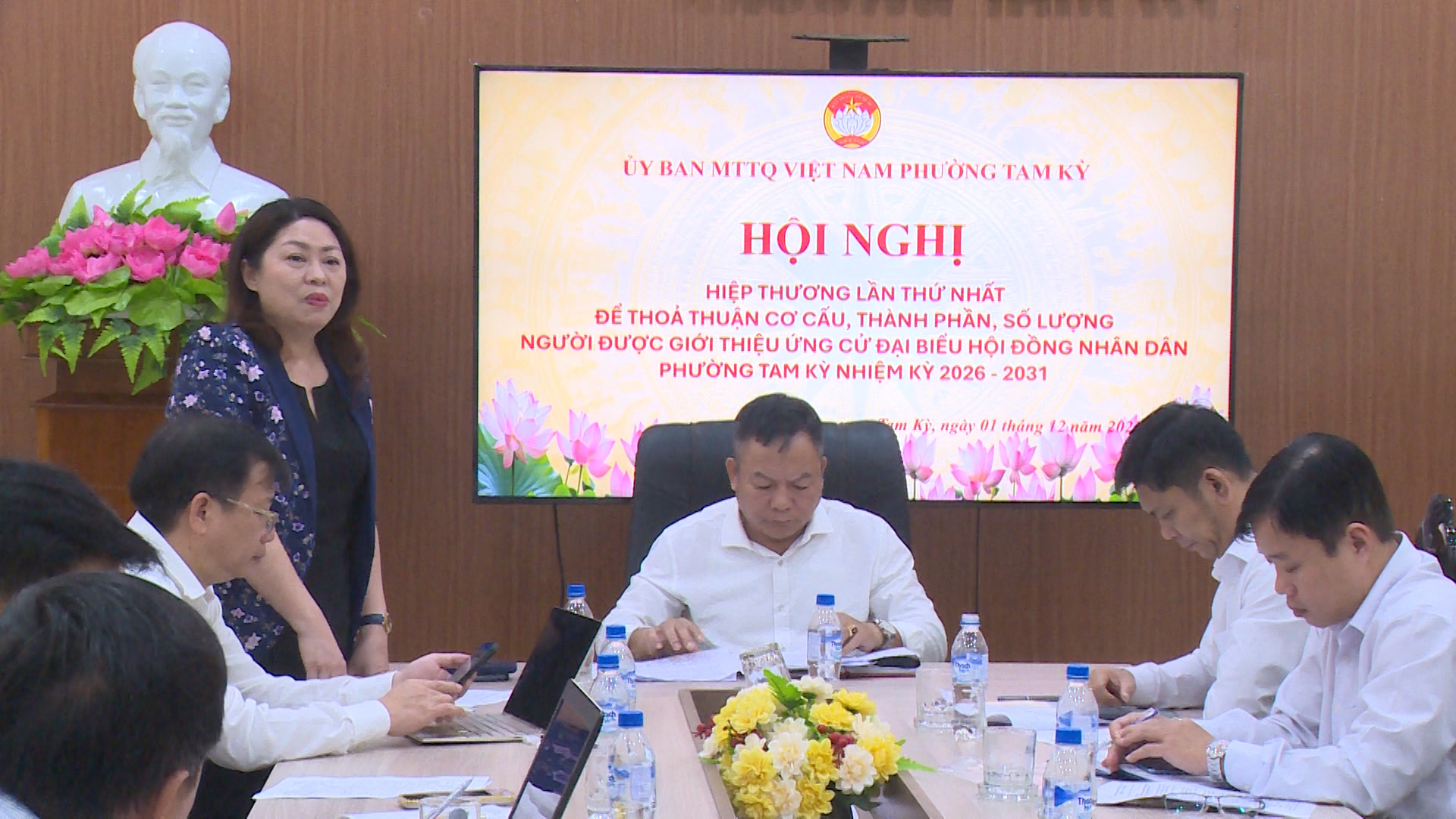 Chiều ngày 1/12/2025, tại trụ sở Ủy ban MTTQ Việt Nam phường Tam Kỳ, Ban Thường trực Ủy ban MTTQ Việt Nam phường tổ chức Hội nghị hiệp thương lần thứ nhất nhằm thỏa thuận về cơ cấu, thành phần và số lượng người được giới thiệu ứng cử đại biểu HĐND phường nhiệm kỳ 2026–2031.
